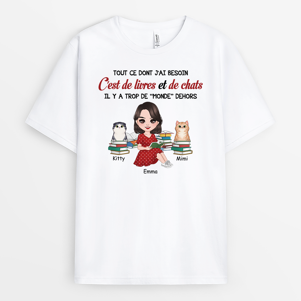 Tee Shirt Personnalisé Chat | Tout Ce Dont J'ai Besoin C'est De Livres Et De Chats