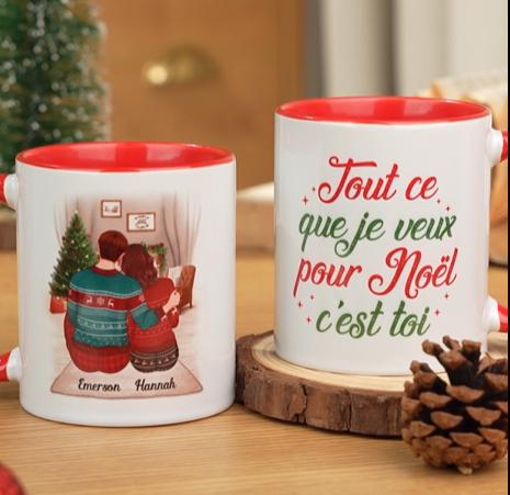 Ce mug personnalisé pour noel est le cadeau idéal pour un couple qui souhaite afficher son amour avec style et simplicité, pour un souvenir qui dure pour toujours.