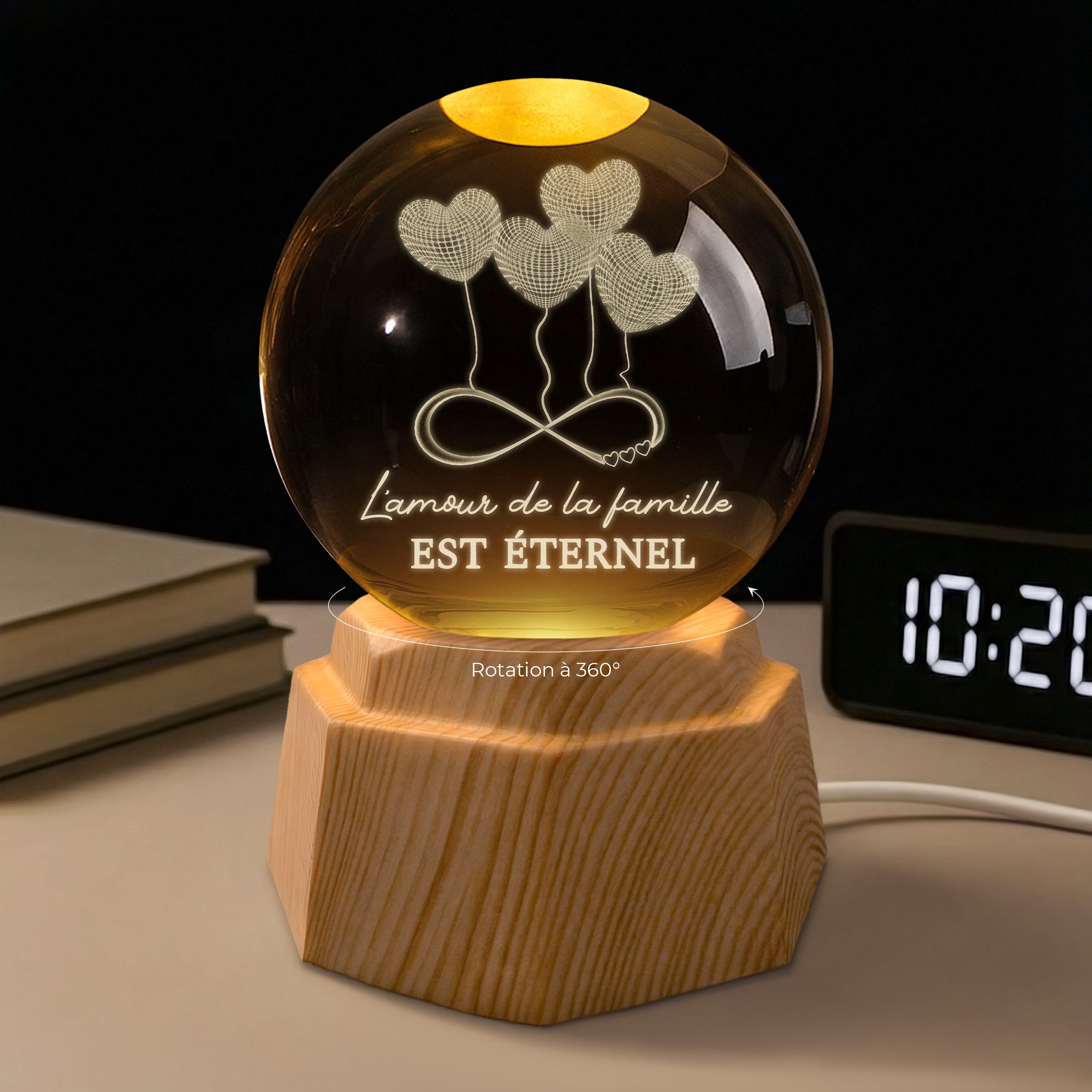 [Effet d'Impression 3D]Veilleuse Boule de Cristal Personnalisée Famille - Design Avec Cœur