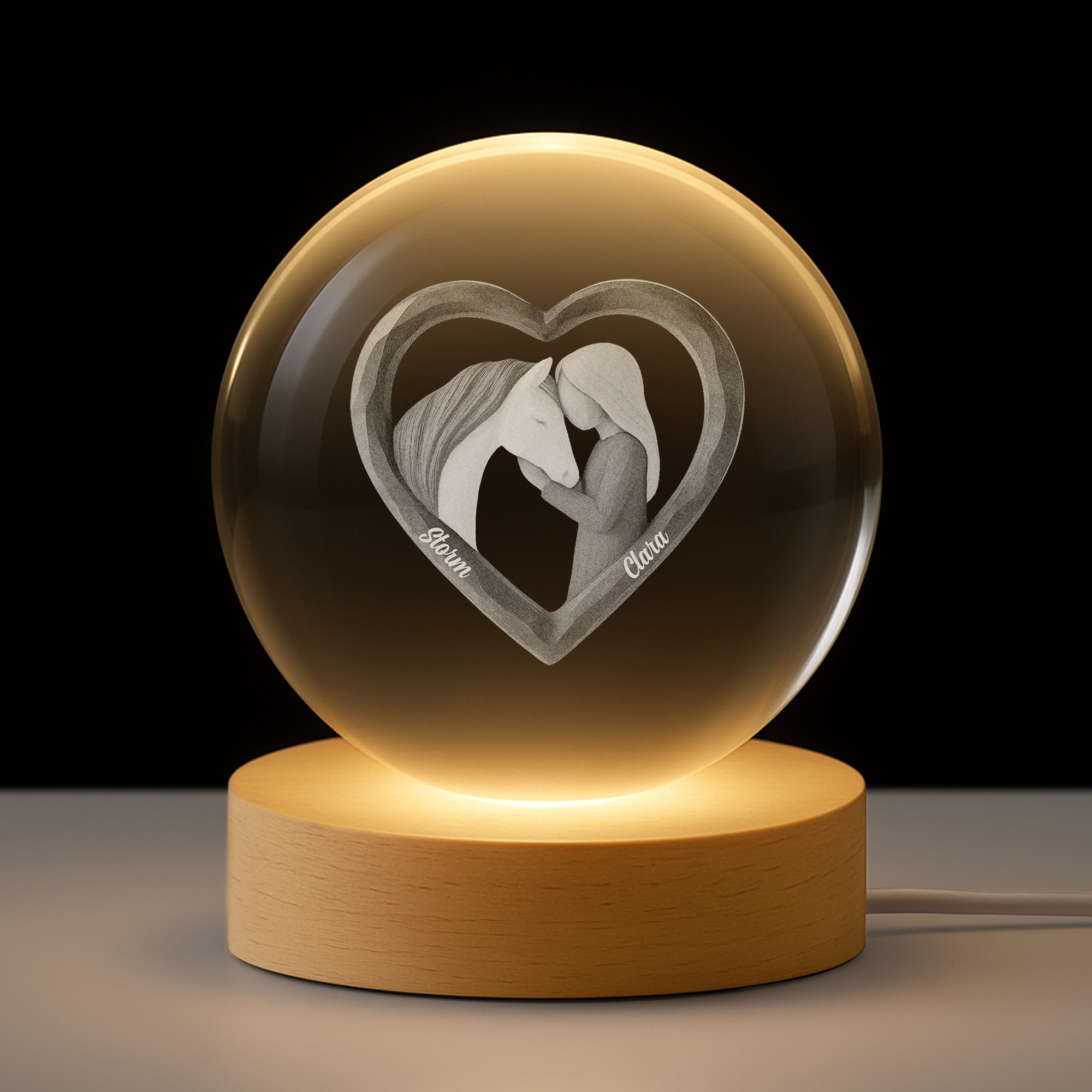 Veilleuse Boule De Cristal Personnalisée Femme/Homme - Amour De Cheval