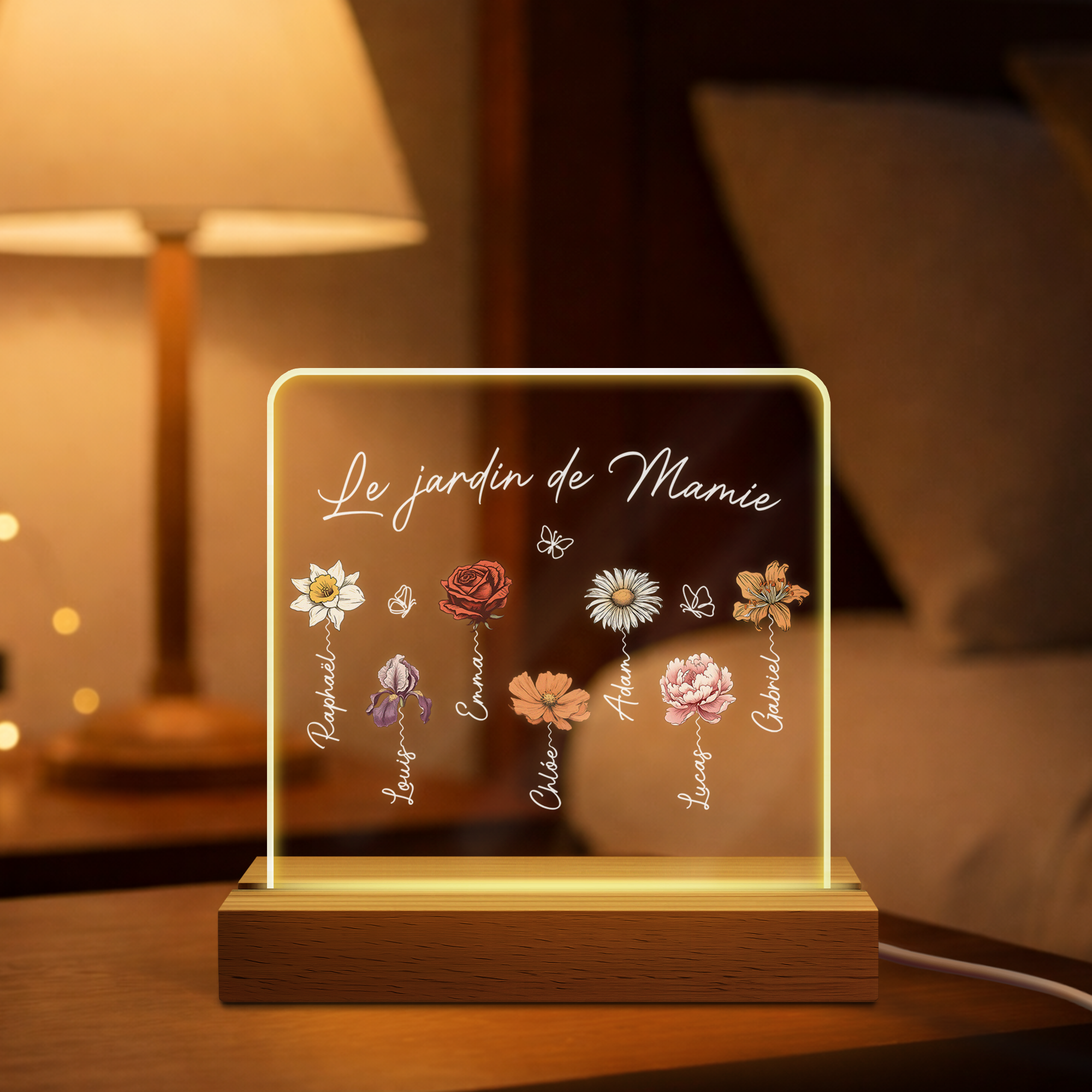 Veilleuse Personnalisable Avec Fleur - Le Jardin De Mamie Maman