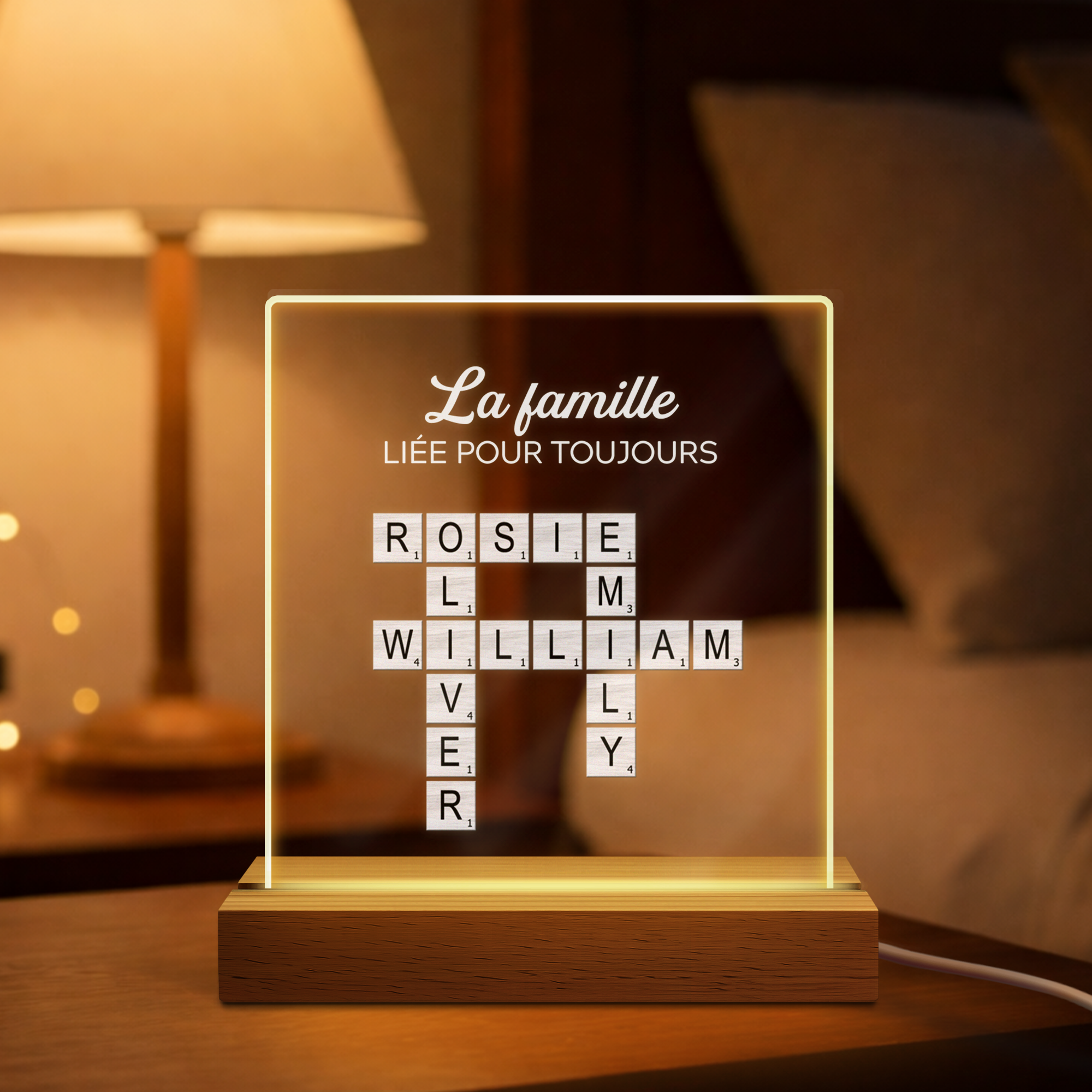 Veilleuse Personnalisée Mot Croisé Famille - Liée Pour Toujours