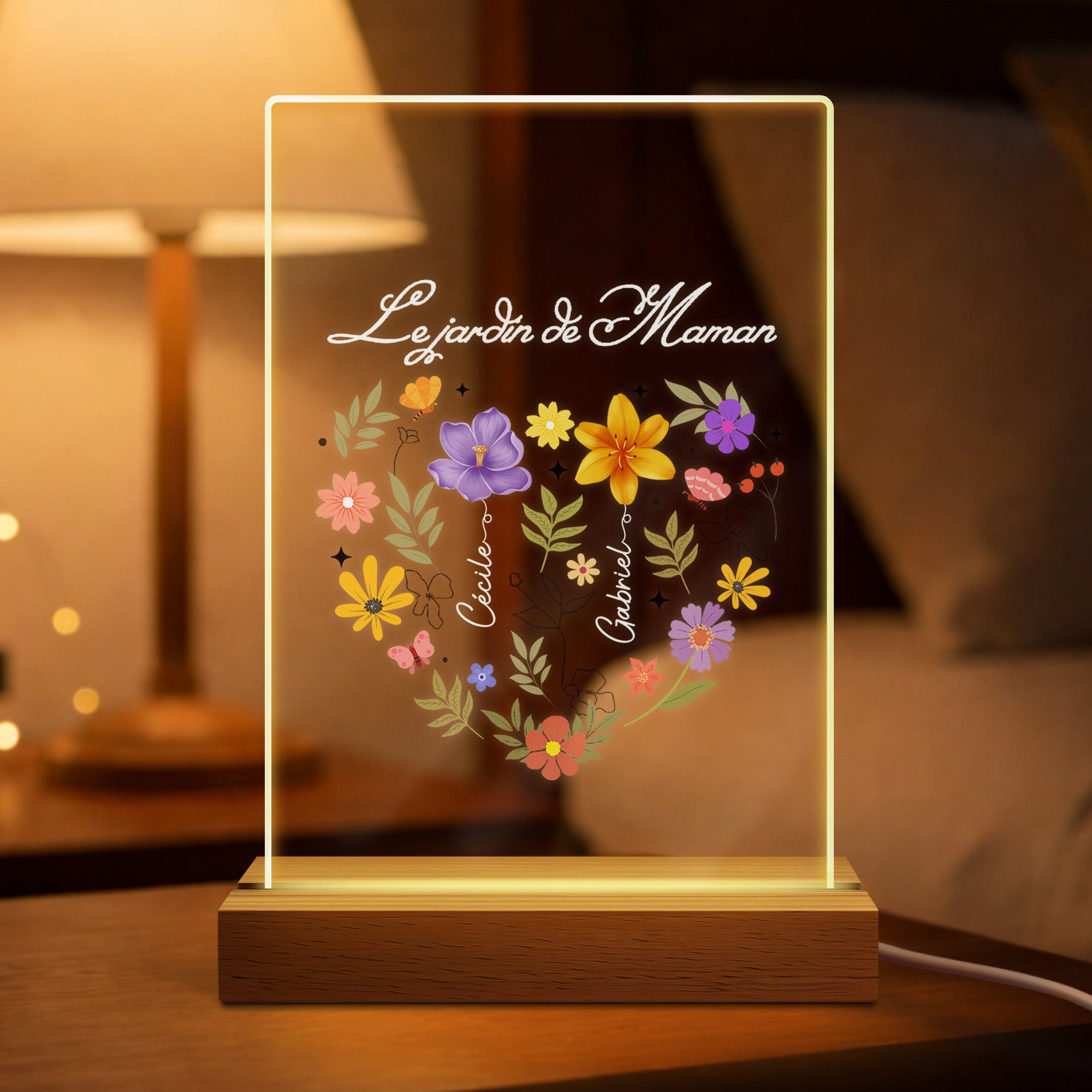 Veilleuse Personnalisée Prénom - Le Jardin De Mamie Maman Avec Cœur