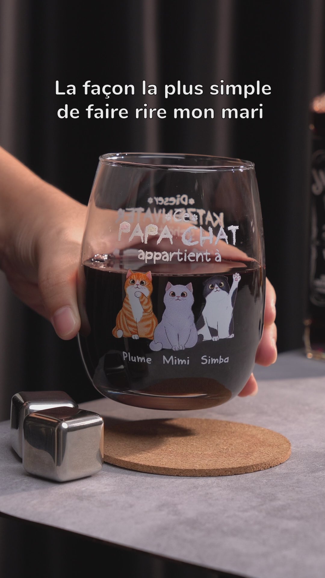 Verre À Vin Sans Pied Personnalisé - Ce Papa Chat Appartient À